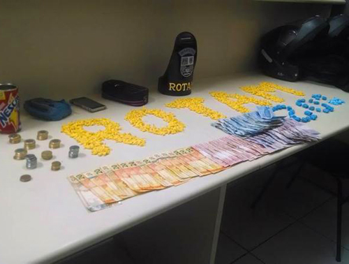 Um traficante foi preso com mais de mil reais em dinheiro trocado e três tipos de drogas em uma casa, na Rua Rio Araguari, no Bairro Alto, na noite desta quarta-feira (10).