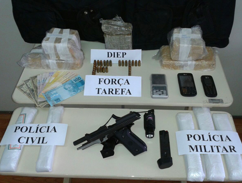Dentro da residência onde ele morava, policiais da força tarefa do Departamento de Inteligência (Diep), encontraram quatro quilos de crack, meio quilo de maconha, duas balanças de precisão, três coletes balísticos e uma pistola calibre 40, de uso exclusivo das forças de segurança.