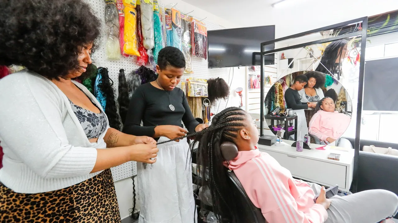 A oração ficou no coração de Deby e hoje, além do trabalho de trancista, ela se preocupa em ajudar outras mulheres com história semelhante. Com 38 anos, mãe de Naomi Pereira Moura da Rocha, 14 anos, e Jamal Prince Pereira Laurindo, 6 anos, ela sabe o quão difícil é conciliar o cuidado com os filhos e o trabalho.