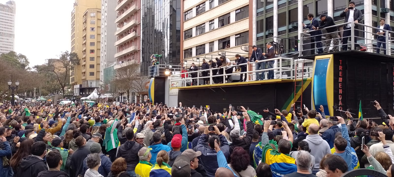 O presidente e sua comitiva chegaram ao calçadão da Rua XV por volta das 16h30. O governador Ratinho Júnior, que também tenta a reeleição, deverá participar do comício, bem como outros candidatos a deputado.