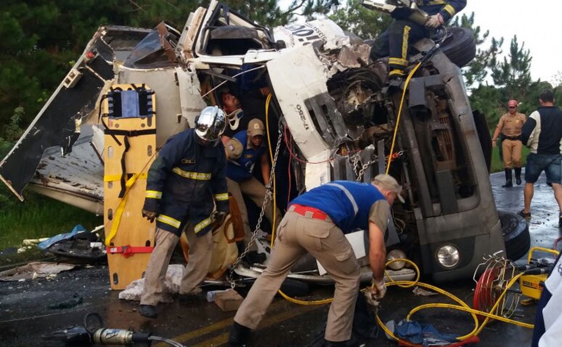 A colisão aconteceu próximo ao Rio Canil e, conforme a Polícia Rodoviária Estadual (PRE) ainda não se sabe o que teria provocado. Com o impacto, o caminhão tombou. As cabines dos dois veículos ficaram totalmente destruídas.