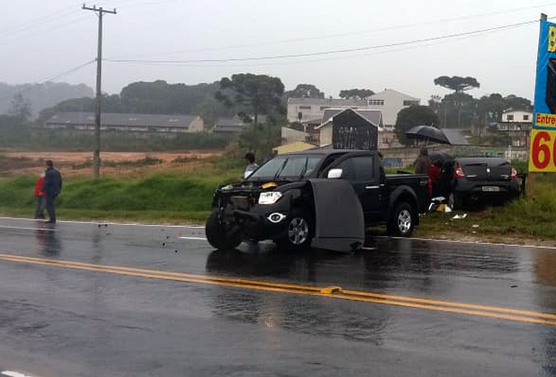 Um acidente no Contorno Norte, na altura do município de Almirante Tamandaré, deixou três pessoas feridas na metade manhã deste sábado (02). Conforme testemunhas, uma caminhonete, com placa de Almirante Tamandaré, rodou na pista e bateu de frente com um Sandero, que vinha na pista contrária.