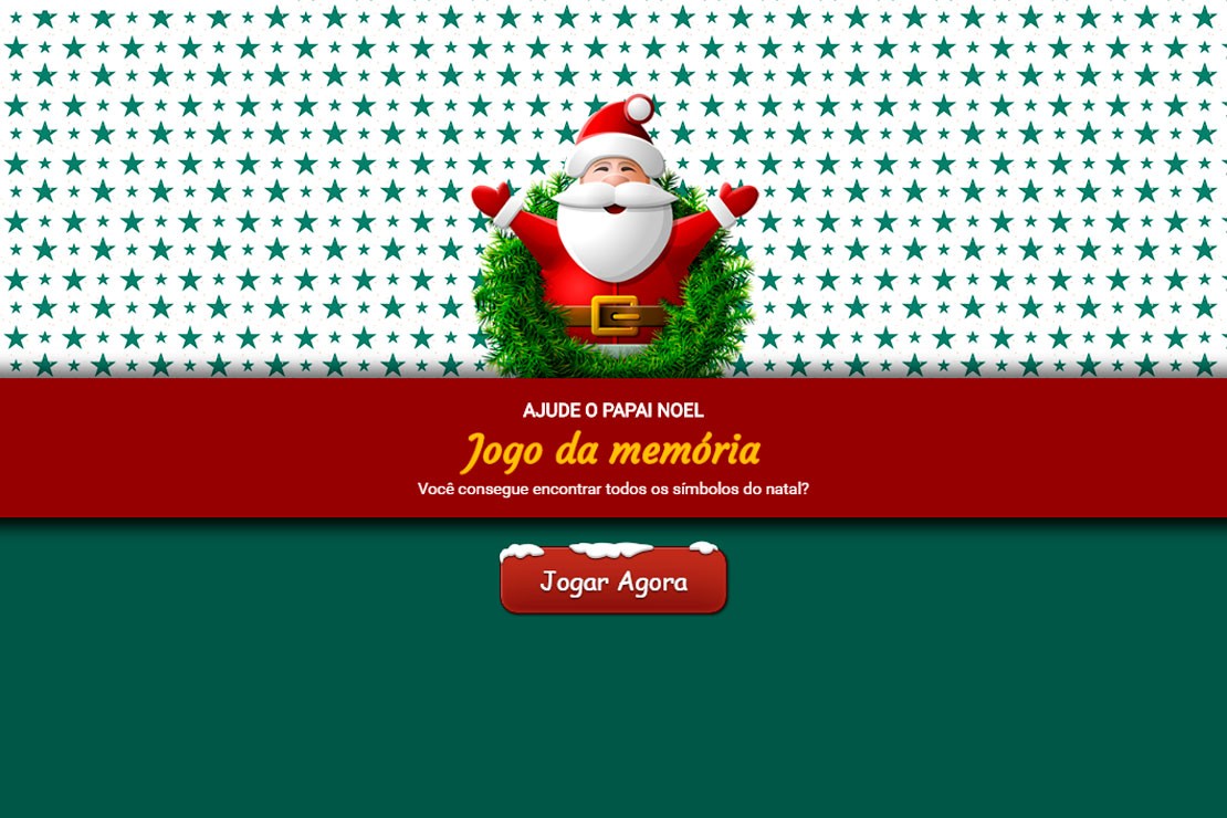 Neste jogo da memória você deve ajudar o Papai Noel a encontrar todos os símbolos do Natal. Mas não é tão fácil assim, todos os pares devem ser encontrados em até 100 segundos. Você acha que consegue? Então clique aí em baixo e boa sorte!