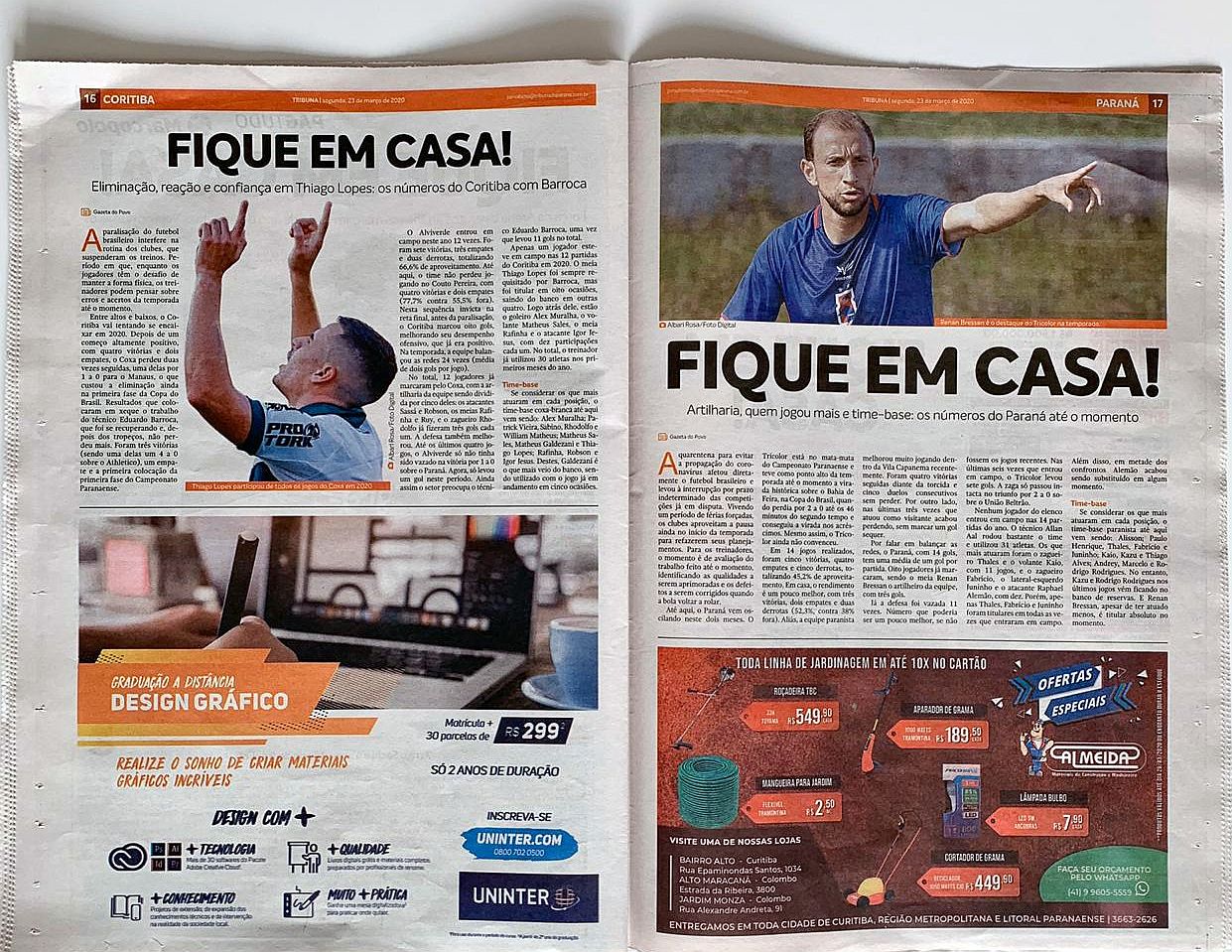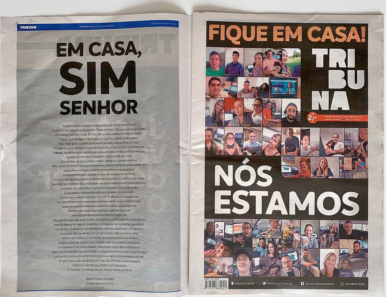 Desde o início da pandemia do novo coronavírus, a Tribuna do Paraná tem acompanhando tudo que se relaciona ao Covid-19 no Brasil, em especial ao casos e medidas governamentais que repercutem em Curitiba. Tanto na cobertura online, quando na versão impressa, o recado é claro em praticamente todos os textos escritos e publicados: Fique em casa!