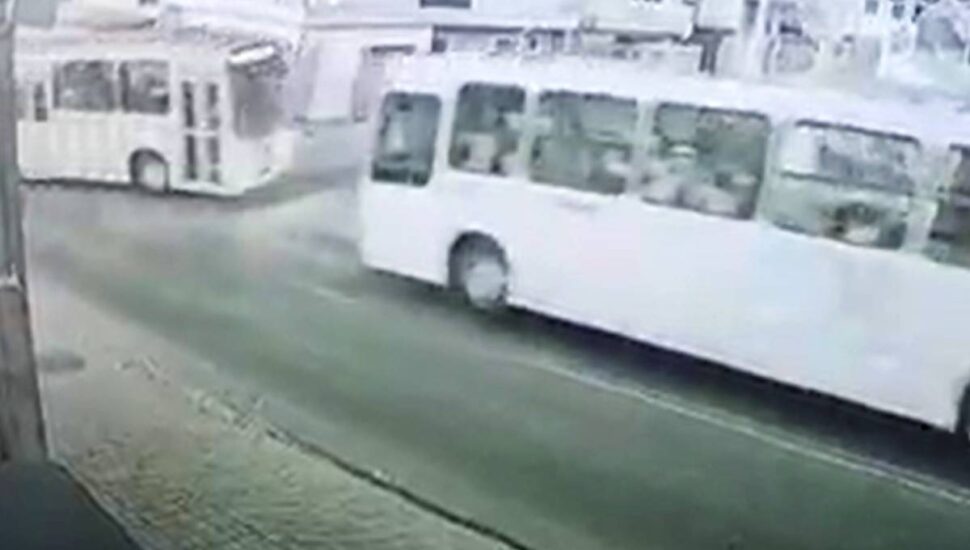 Uma câmera de segurança registrou a ocorrência. Nas imagens, percebe-se que os dois ônibus seguiam pela avenida, em sentidos opostos, quando um deles entra à esquerda, e o outro não consegue frear a tempo. Três ambulâncias foram acionadas para prestar atendimento