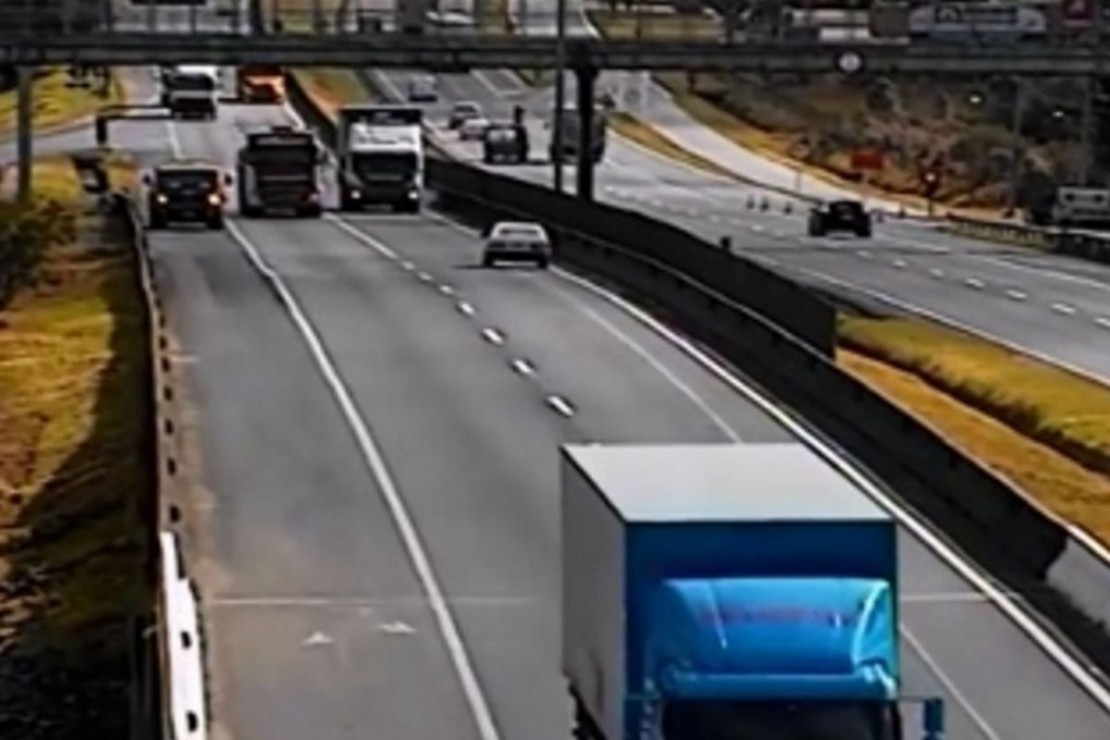 Um carro entrou na contramão na BR-376, em São José dos Pinhais, e por pouco não causou um acidente grave. Um vídeo feito pela Autopista Litoral Sul, concessionária que administra esse trecho da rodovia, mostra o momento em que o Gol entra na pista e quase se choca com várias carretas que vinham no sentido contrário.