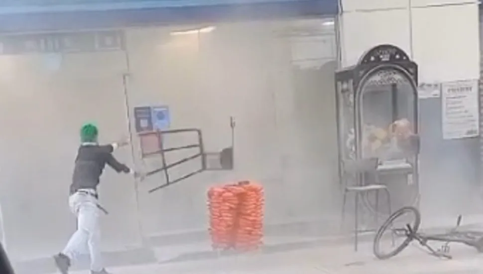 Nas imagens, em um “ataque de fúria”, ele arremessa uma cadeira, objetos e espalha o conteúdo de um extintor de incêndios nas áreas externa e interna da loja, antes de abandonar o local, de bicicleta. A ação fez com que clientes tivessem que deixar a loja.