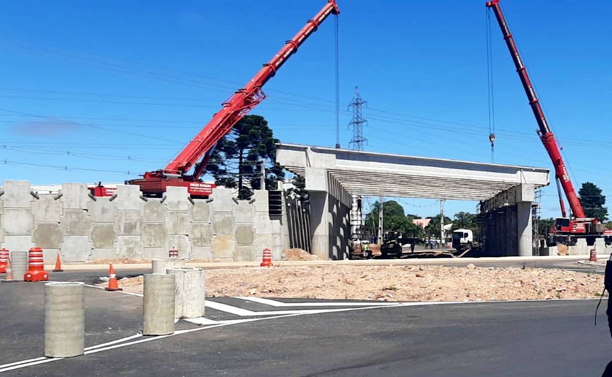 Registro feito pelo leitor da Tribuna do Paraná José A de Souza mostra o andamento das obras no viaduto do Bradesco, em São José dos Pinhais, região metropolitana de Curitiba. O trecho ficou bloqueado neste fim de semana para a instalação de vigas gigantes na estrutura que promete desafogar o intenso fluxo de veículos da região.