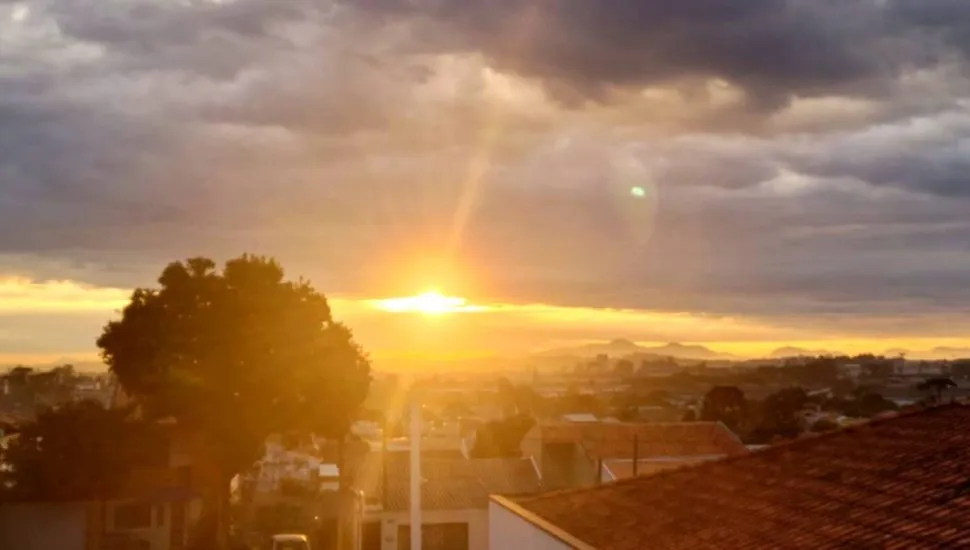 Amanhecer em Curitiba estava fechado, com apenas uma frestinha para o sol. Foto: Tribuna do Paraná.