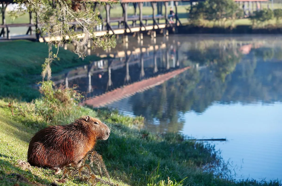 Embora pareçam dóceis à primeira vista, as capivaras são animais silvestres e podem reagir de forma inesperada quando se sentem ameaçadas, especialmente na presença de filhotes. Por isso, é fundamental ter cautela ao registrá-las pela cidade.