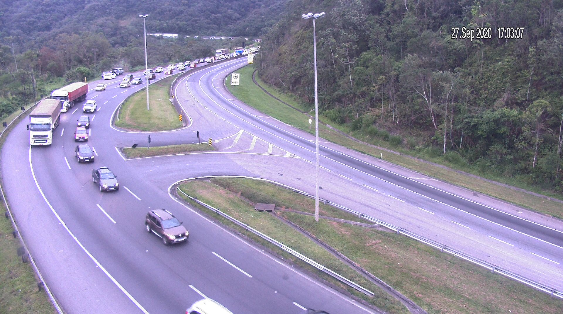 A Ecovia, concessionária que administra o trecho entre Curitiba e o Litoral do Paraná informou, por volta das 17h, que havia lentidão na Serra. Na BR 376, que liga o Paraná a Santa Catarina, o fluxo era intenso, mas sem retenção.