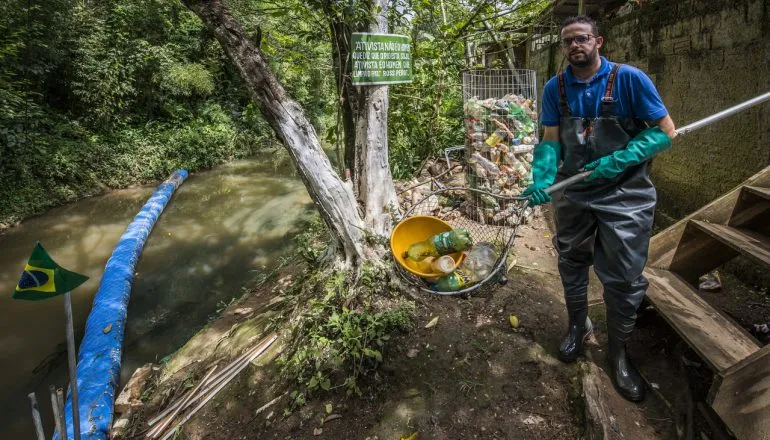 O projeto da Ecobarreira começou em 2017. Depois de curtir a infância nadando e pescando no rio que passa nos fundos da sua casa, Diego viu a poluição acabar com essa possibilidade para as gerações futuras. Inconformado, decidiu por conta própria fazer a sua parte, já que não encontrou respaldo no poder público ou mesmo na comunidade ao redor.
