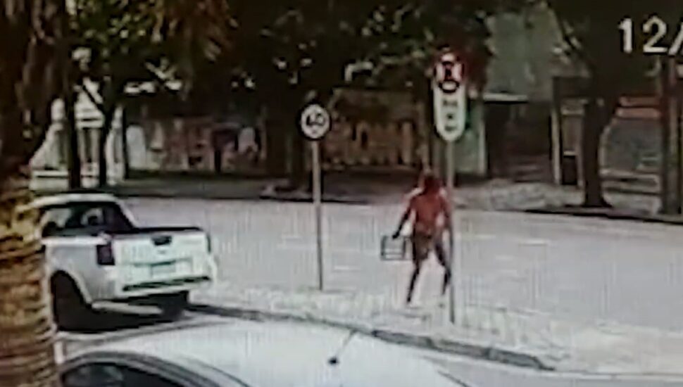 Nas imagens, o suspeito é visto sem camisa, caminhando na calçada. Ele, de repente, se abaixa para pegar a grade do bueiro e, logo em seguida, arremessa o objeto que atinge o carro. Um acidente mais grave parece não ter ocorrido por causa do movimento menor do domingo à noite. O registro da câmera de segurança mostra um horário próximo das 19h. A Polícia Militar informou e não houve abertura de chamado pelo sistema neste dia.