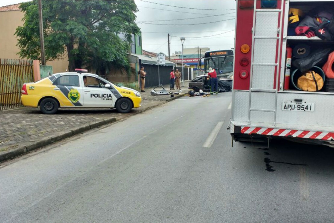 Duas pessoas morreram e três ficaram gravemente feridas em um acidente no município de Araucária, na Região Metropolitana de Curitiba (RMC), na manhã deste domingo (04). A colisão aconteceu no cruzamento da Rua Alagoas com a Miguel Bertolino Pizato, onde um carro e um ônibus da linha São Francisco acabaram batendo.