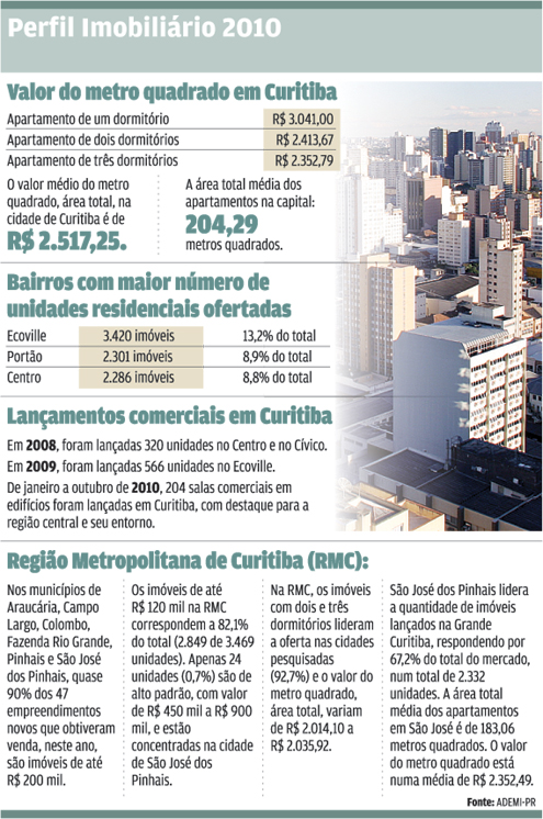 Os números da construção civil continuam apresentando desdobramentos positivos para Curitiba. O Perfil Imobiliário 2010, elaborado pela Associação dos Dirigentes de Empresas do Mercado Imobiliário do Paraná (Ademi-PR), revelou que só em Curitiba já foram entregues 30 mil unidades residenciais até outubro deste ano.