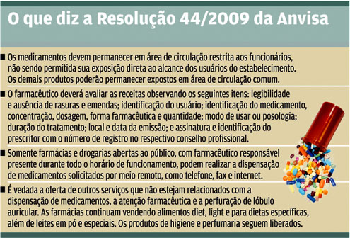 As farmácias de Curitiba estão se adaptando à novas regras impostas pela Agência Nacional de Vigilância Sanitária (Anvisa), com a Resolução 44/2009. A partir do dia 18 deste mês, os estabelecimentos não poderão mais vender produtos que não estejam relacionados à saúde, como salgadinhos, bolachas, balas, pães comuns e bebidas.
