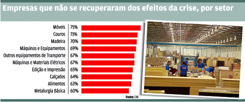 Tal discrepância, segundo a CNI, ocorre porque os problemas decorrentes da crise afetaram setores específicos, principalmente, aqueles dependentes do mercado externo. Madeira, móveis, couros e calçados foram os segmentos que se reconheceram como os mais atingidos.