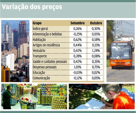 A inflação medida pelo Índice de Preços ao Consumidor Amplo-15 (IPCA-15) acelerou na Grande Curitiba, passando de 0,01% em setembro para 0,30% em outubro.