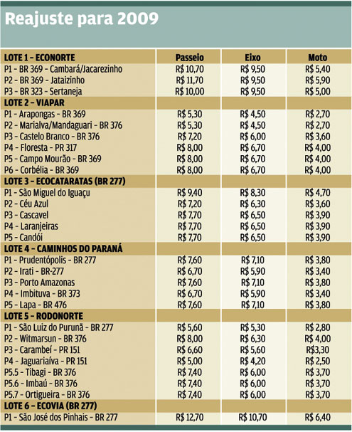 O reajuste anual, previsto nos contratos de concessão firmados com as concessionárias que administram as estradas, foi garantido por liminares obtidas na Justiça Federal, na última semana. Ontem, as empresas Rodonorte e Econorte também buscaram a via judicial para garantir o aumento em 12 das 13 praças que administram.