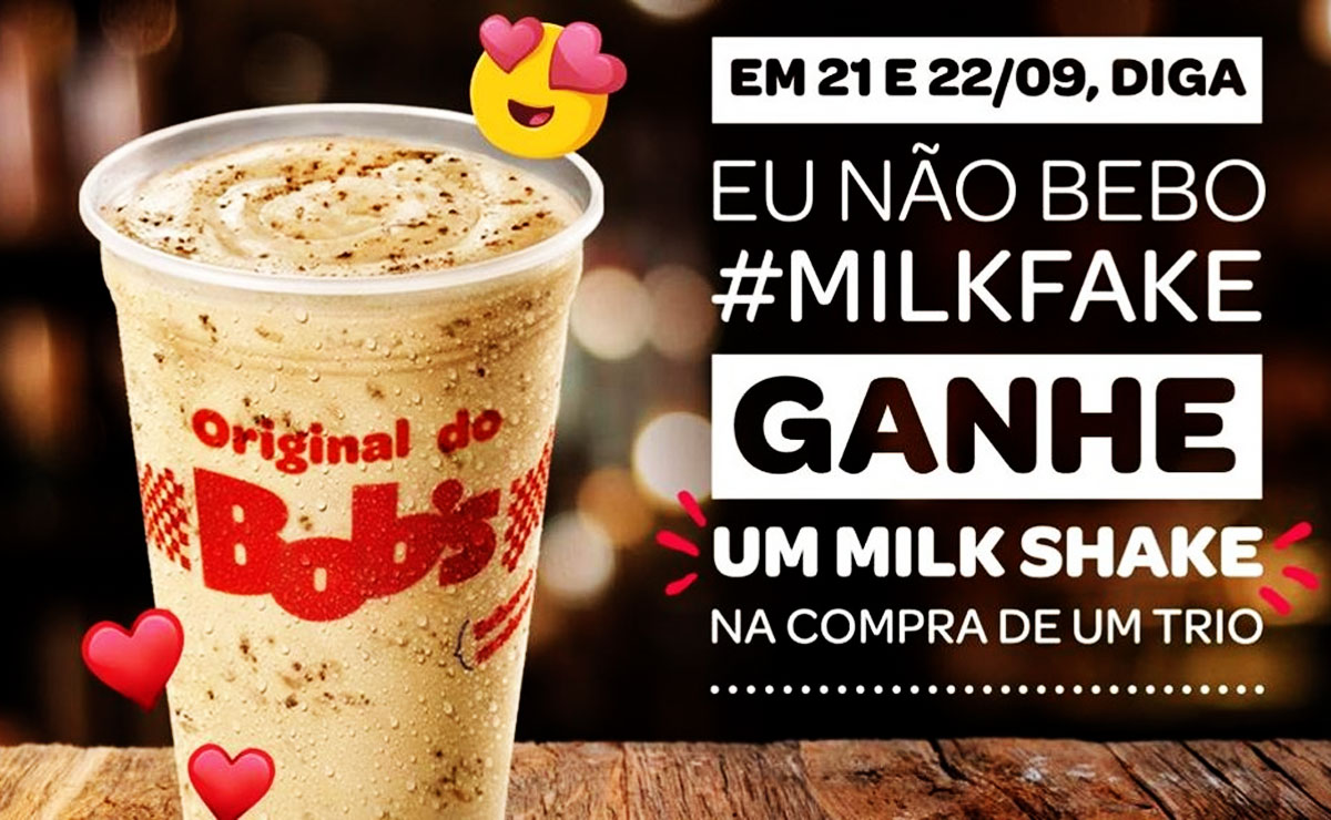 Para promover a campanha o Bob´s prometeu um milk-shake grátis para quem “Eu não bebo #MilkFake” ao comprar qualquer trio da rede. A promoção vale até quinta-feira (22).