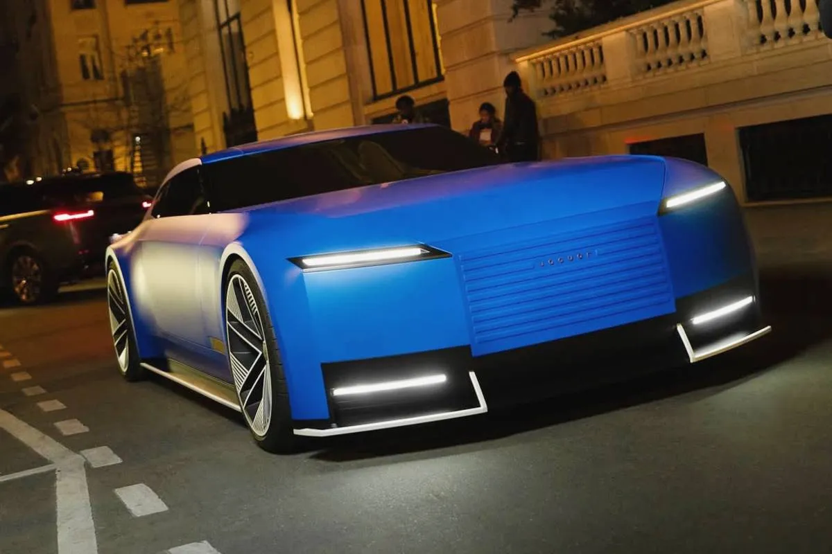 Após ter as primeiras imagens reveladas com a carroceria cor-de-rosa, a versão que conduziu celebridades a eventos da Semana de Moda de Paris foi pintada de azul. O veículo chamou mais a atenção do que passageiros como Zoe Saldaña, a vencedora do Oscar 2025 de melhor atriz coadjuvante por “Emilia Pérez”, e o ator Barry Keoghan.