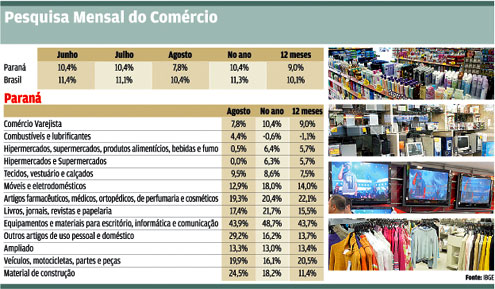 Apesar de ter obtido uma taxa abaixo da média nacional, o comércio varejista paranaense fechou o mês de agosto com um bom desempenho nas vendas, de acordo com dados divulgados ontem pelo Instituto Brasileiro de Geografia e Estatística (IBGE).