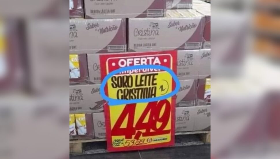 A venda de bebida láctea anunciada como soro de leite em um mercado de São Paulo chamou a atenção nas redes sociais nesta semana. O produto foi exposto em estabelecimento da rede Nagumo por R$ 4,49, em caixa similar e localizada em um lugar próximo às de leite.