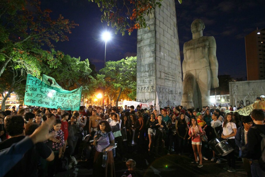 Durante o ato, militantes de diversos movimentos fizeram falas contra a PEC 241, que limita os gastos públicos, e contra a MP 746, que promove uma reforma no currículo do ensino médio. Um grupo que participa da ocupação dos prédios da reitoria da Universidade Federal do Paraná (UFPR) também esteve no protesto. A ocupação da UFPR foi motivada pela dos estudantes secundaristas.