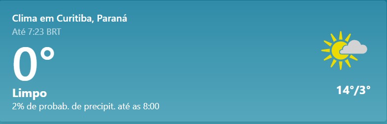 Usando o site do The Weather Channel, presente no mundo todo, identificamos que Curitiba estava com 0,4°C durante nossa medição, conforme imagem abaixo.