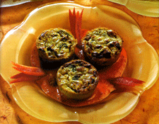 Misture bem até formar um composto homogêneo e distribua em seis forminhas untadas com azeite e pulverizadas com farinha de rosca. Leve ao forno – 190º – por cerca de 20 minutos.