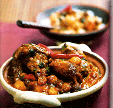 Aqueça o azeite em fogo brando e refogue a cebola, o alho e o salsão, até perderem ligeiramente a cor. Junte os pedaços de carne e faça dourar de todos os lados. Incorpore as passas, as pimentas, o curry, a polpa de tomates, uma xícara de água e tempere com sal. Deixe ferver, cubra e deixe cozinhar em fogo baixo por cerca de 2 horas, mexendo de vez em quando.