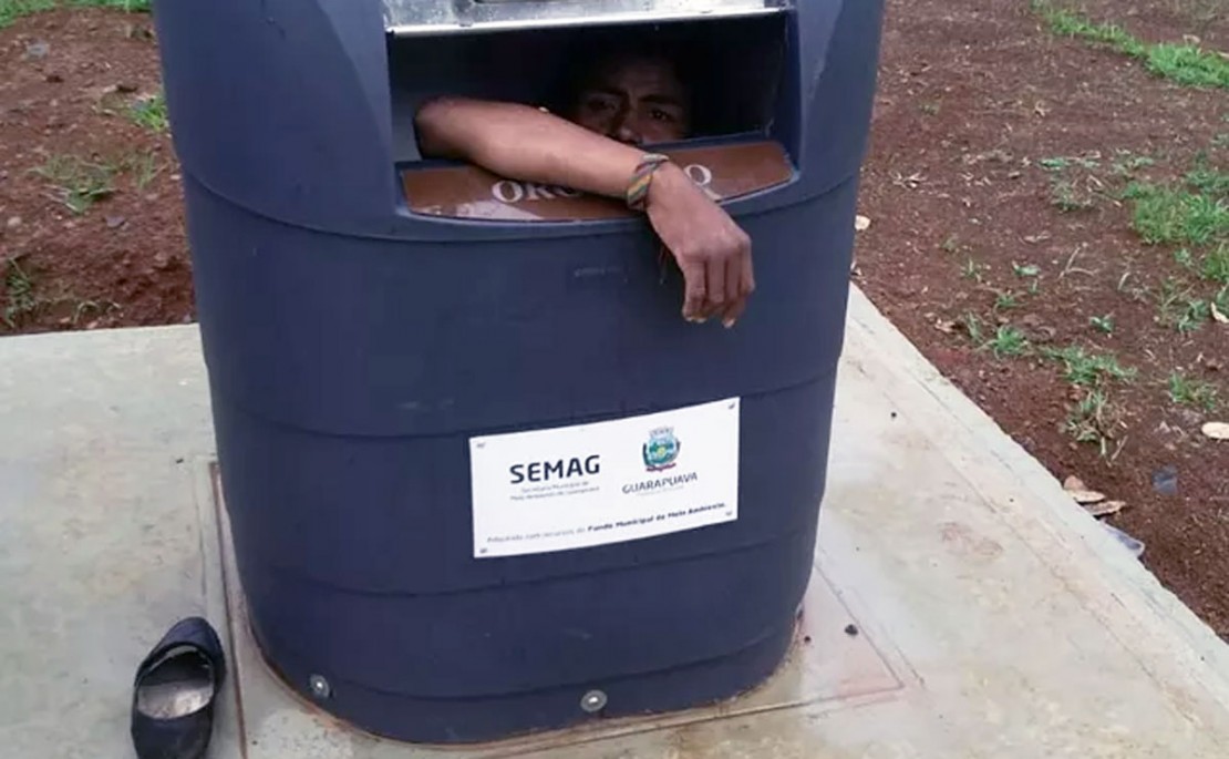 Uma situação inusitada chamou a atenção de quem passava pela Praça Cleve, no centro de Guarapuava, na região central do Paraná. Com sinais de embriaguez, um homem acabou caindo dentro de uma lixeira subterrânea ao tentar resgatar sua Carteira de Trabalho.