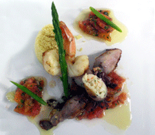 Lulas recheadas com palmito e camarão