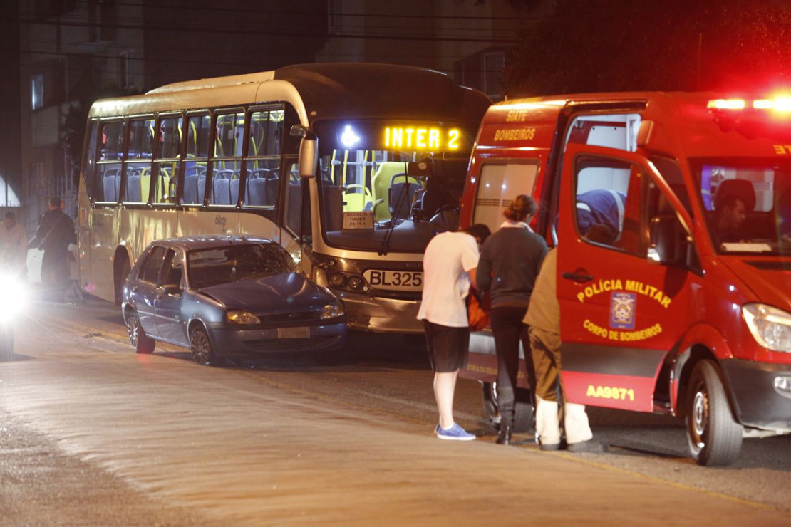 Um motorista de 80 anos de idade ficou ferido após se envolver em um acidente de trânsito na noite desta quinta-feira (24), em um cruzamento no bairro Juvevê, em Curitiba. A colisão envolveu, além do carro do idoso, um ligeirinho da linha Inter 2.