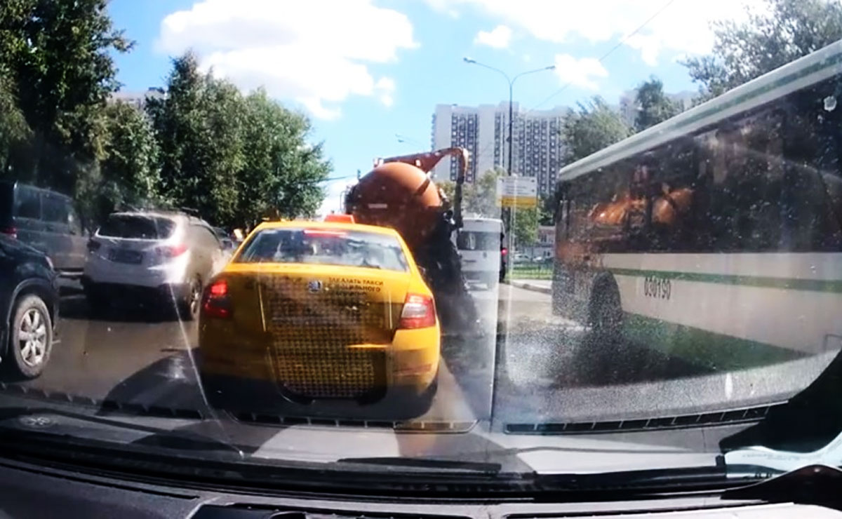 Um homem, identificado como Witalca Chumakov, gravou o momento do acidente. Na imagem, é possível ver que vários veículos, incluindo um ônibus e um táxi, foram atingidos pelos dejetos. Por sorte, todos pareciam estar com as janelas fechadas.