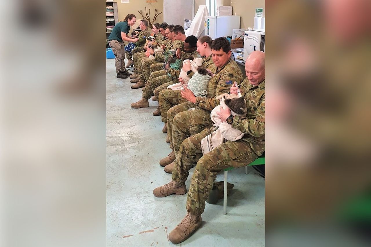 Em postagem feita no perfil oficial da 9ª Brigada do Exército Australiano, os coalas resgatados da Ilha do Kangaroo e levados ao Cleland Wildlife Park, na região da cidade Adelaide, aparecem no colo dos oficiais, sendo ‘amamentados’ por eles.