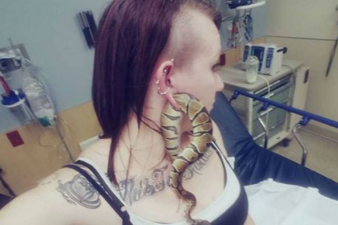 Sim, é isso mesmo. Ashley postou o relato em seu Facebook e viralizou. “Eu estava segurando minha cobra, e a burra viu um buraco, que no caso era o buraco da minha orelha. Ela pensou que era uma ideia brilhante tentar passar por ele… Aconteceu tudo tão rápido que, antes que eu mesmo soubesse o que estava acontecendo, já era muito tarde. Agora, acredite ou não, eu estou sentada na sala de emergência com Bart presa na minha orelha”, dizia o relato.