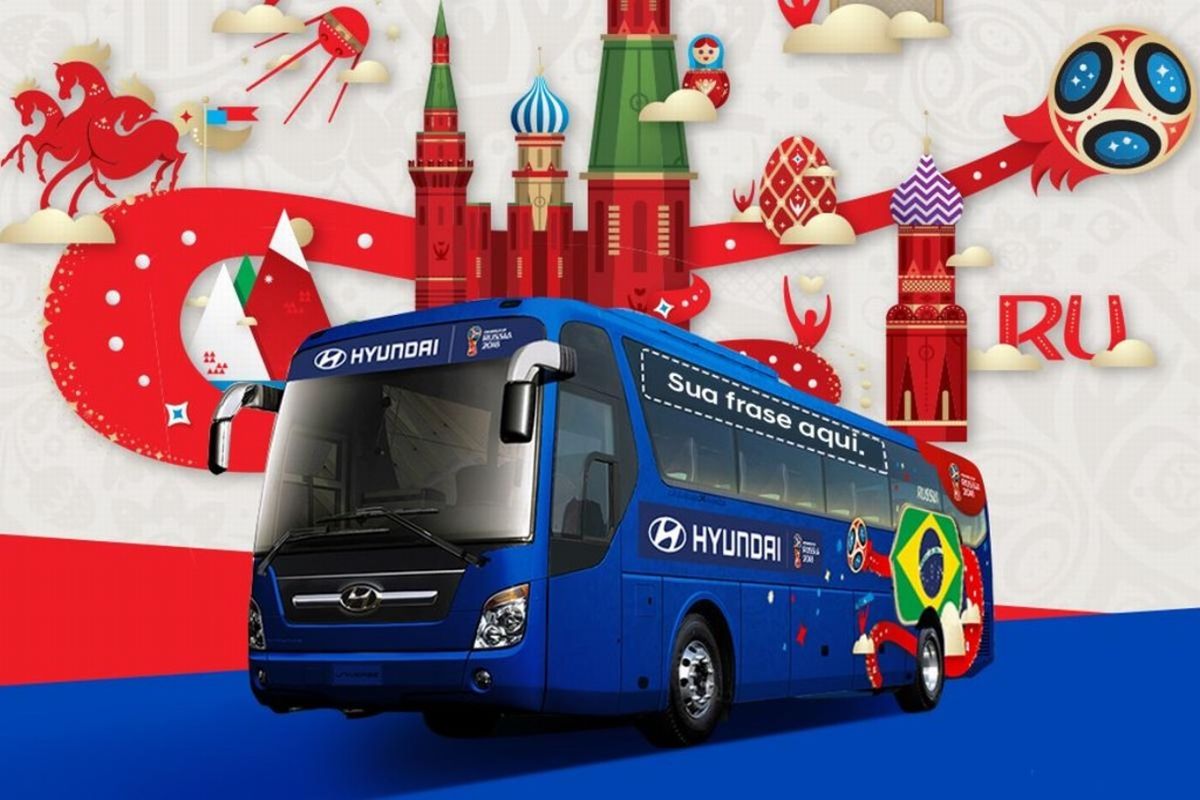 A Hyundai, patrocinadora oficial da Copa do Mundo na Rússia, abriu a votação para definir a frase que estampará o ônibus da seleção brasileira durante o Mundial. O internauta poderá escolher entre as três finalistas do concurso cultural “Be there with Hyundai” (Esteja lá com a Hyundai) lançado pela montadora sul-coreana.