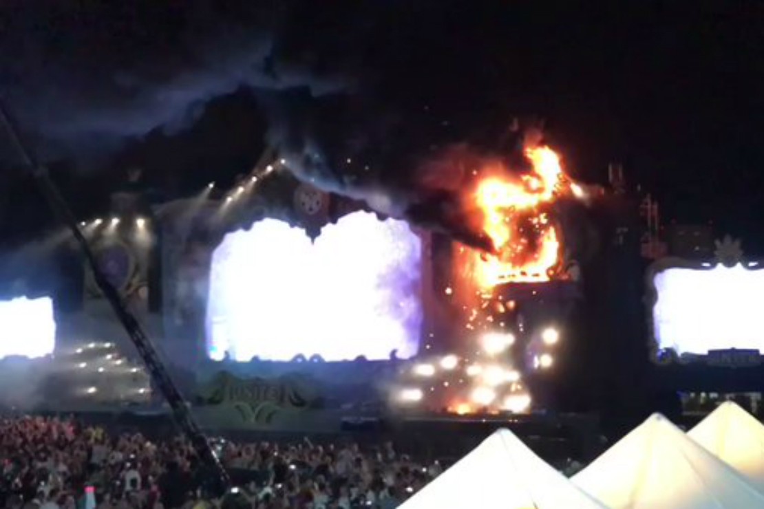 As imagens de vídeo mostram o fogo começando no topo de uma estrutura temporária erguida no palco onde um telão mostrava a performance de um dos artistas. As chamas rapidamente se espalharam até que engoliram todo o palco.