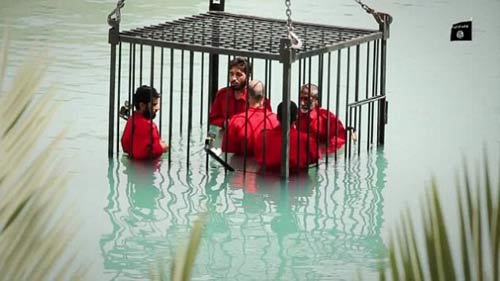 O grupo extremista Estado Islâmico divulgou nesta terça-feira (23) imagens de prisioneiros sendo executados. São ao todo 16 homens acusados pelos jihadista de serem espiões. De acordo com as imagens, é possível ver que parte do grupo é assassinada dentro de uma gaiola lançada às águas.