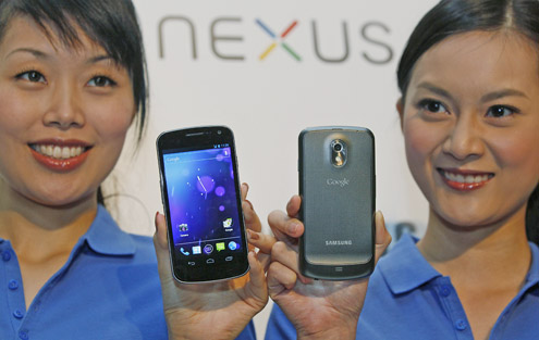 O executivo do Google, Andy Rubin, e o presidente da Samsung, J.K. Shin, apresentaram nesta quarta-feira, o Galaxy Nexus, primeiro smartphone do mundo a receber a nova versão do sistema operacional Android, chamada de Ice Cream Sandwich, que também roda em tablets, em Hong Kong. O lançamento acirra a concorrência com a Apple. O novo aparelho foi anunciado pouco dias após a companhia americana lançar o iPhone 4S.