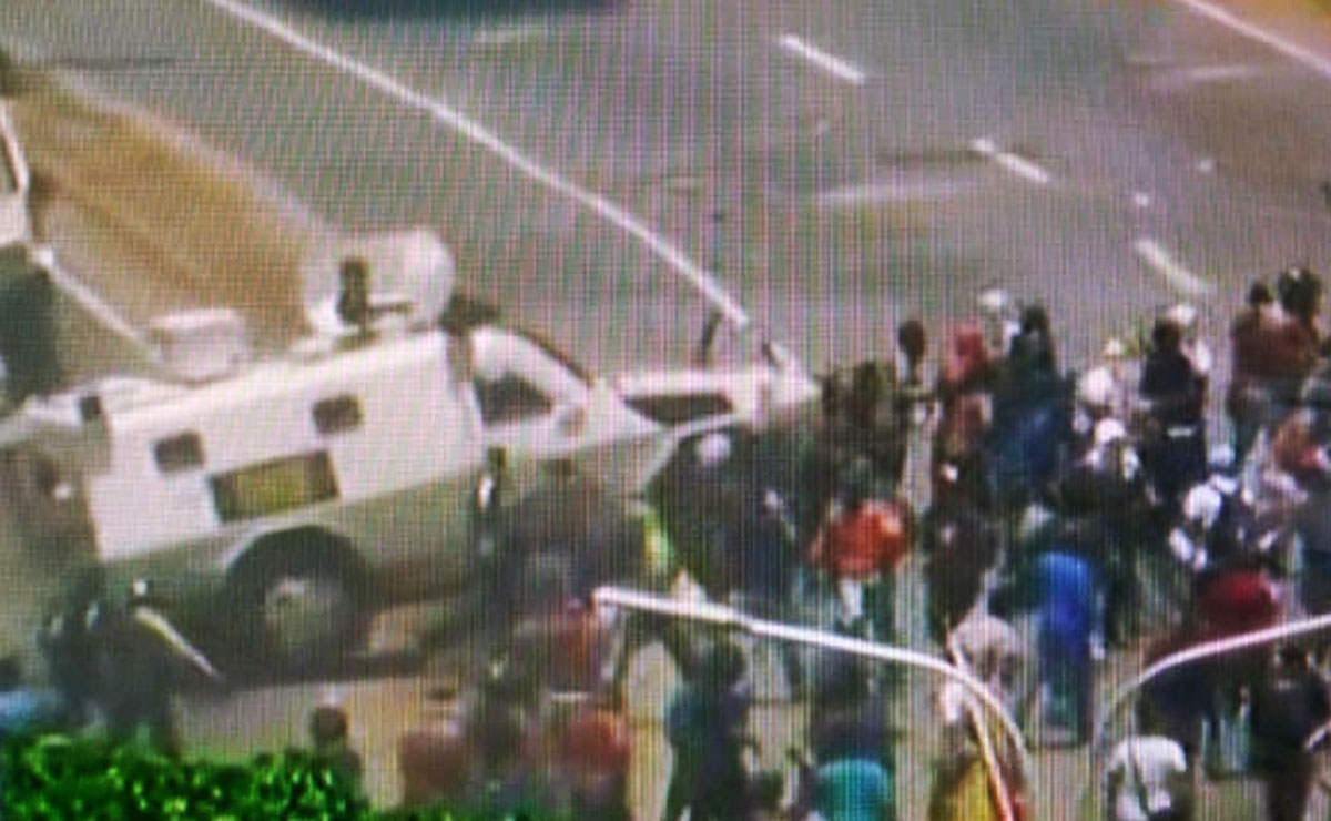 O clima está bastante tenso no país. Um grupo de manifestantes foi atropelado por um veículo blindado que estava sendo atacado com pedras e pedaços de madeira.