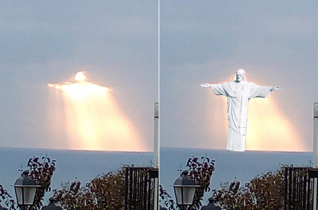 A foto foi feita na região da Campanha, na Itália. Na fotografia os raios solares vencem a barreira de nuvens e tem-se a impressão de que aparece uma forma masculina sobre as ondas, de braços abertos, semelhante ao Cristo Redentor do Rio de Janeiro. A associação da forma, com os raios solares e a fé das pessoas fez com que a foto feita pelo chefe de cozinha Alfredo viralizasse.