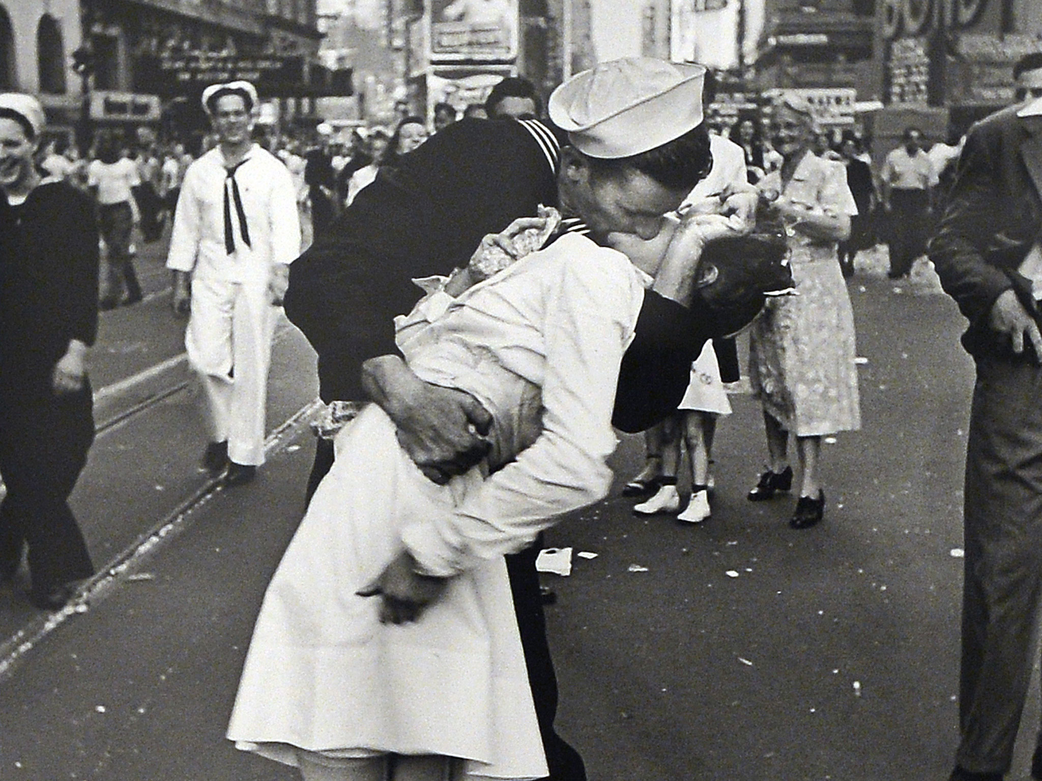 Friedman era uma enfermeira de 21 anos quando, em 14 de agosto de 1945, os japoneses se renderam e deram fim à Segunda Guerra. Quando a notícia se espalhou em Nova York, as pessoas foram para as ruas. Foi quando George Mendonsa girou em torno dela e lhe deu um beijo. Os dois nunca se conheceram. Na verdade, Mendonsa estava comprometido com Rita Petry, que mais tarde se tornaria sua esposa.