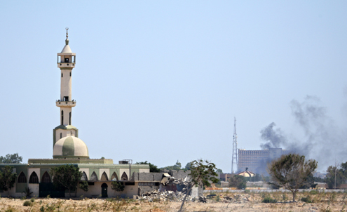 O complexo de Kadafi, duramente atingido pelos ataques da Organização do Tratado do Atlântico Norte (Otan), aparece como um dos centros de resistência do governo, desde que tanques assumiram posições e começaram a disparar nos rebeldes que tentam chegar ao local.