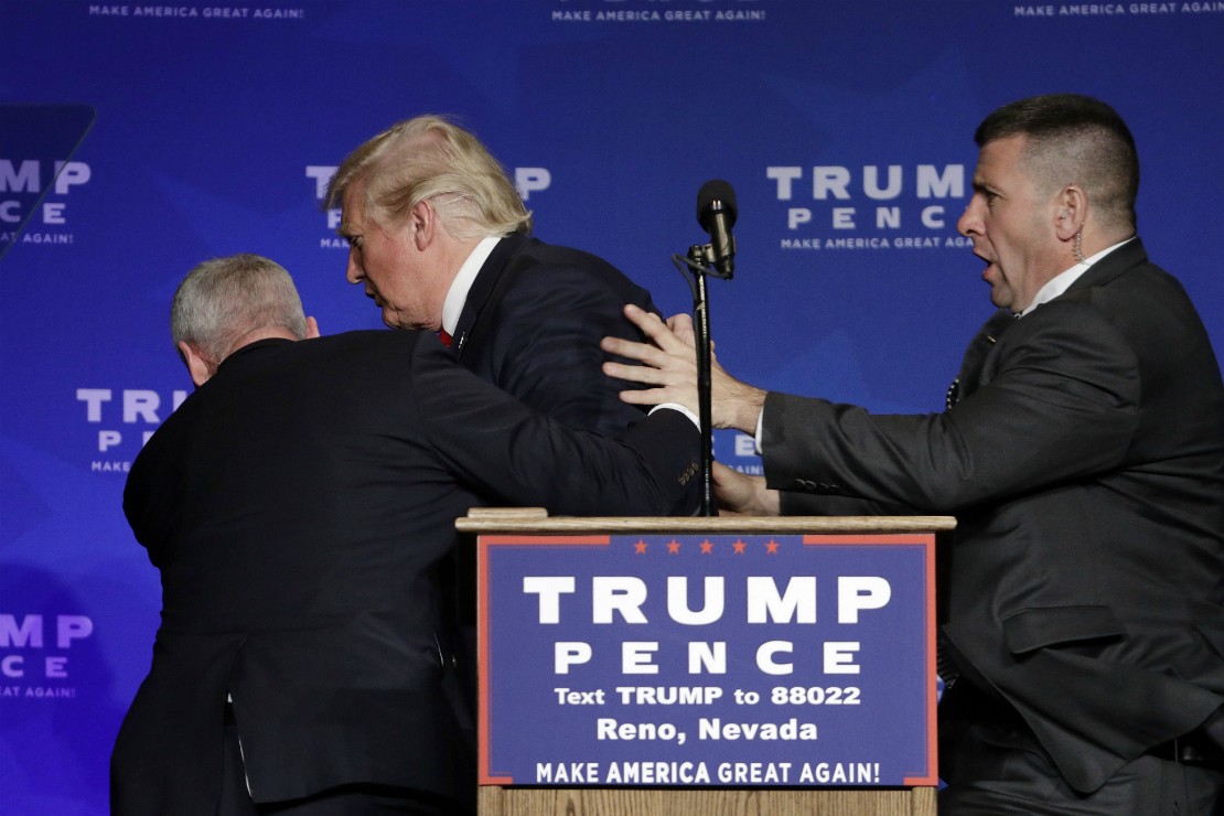 O candidato republicano à presidência dos Estados Unidos, Donald Trump, foi retirado às pressas do palco de um salão de convenções em Nevada, depois que um homem foi abordado por guardas armados e levado para fora do local.