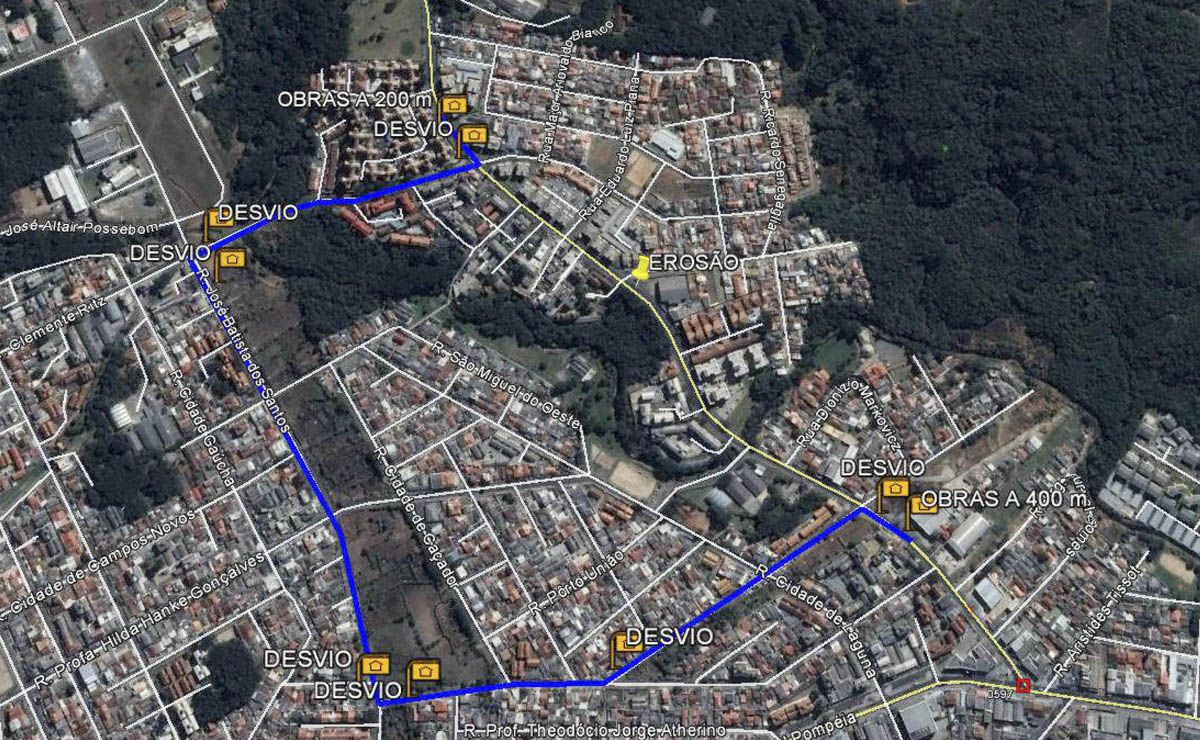 No sentido Fazendinha, para quem seguir pela João Dembinski, a solução será entrar à direita na Clemente Ritz e, em seguida, à esquerda nas ruas José Batista dos Santos e Garuva até voltar à João Dembinski. Todo o trajeto provisório estará sinalizado.