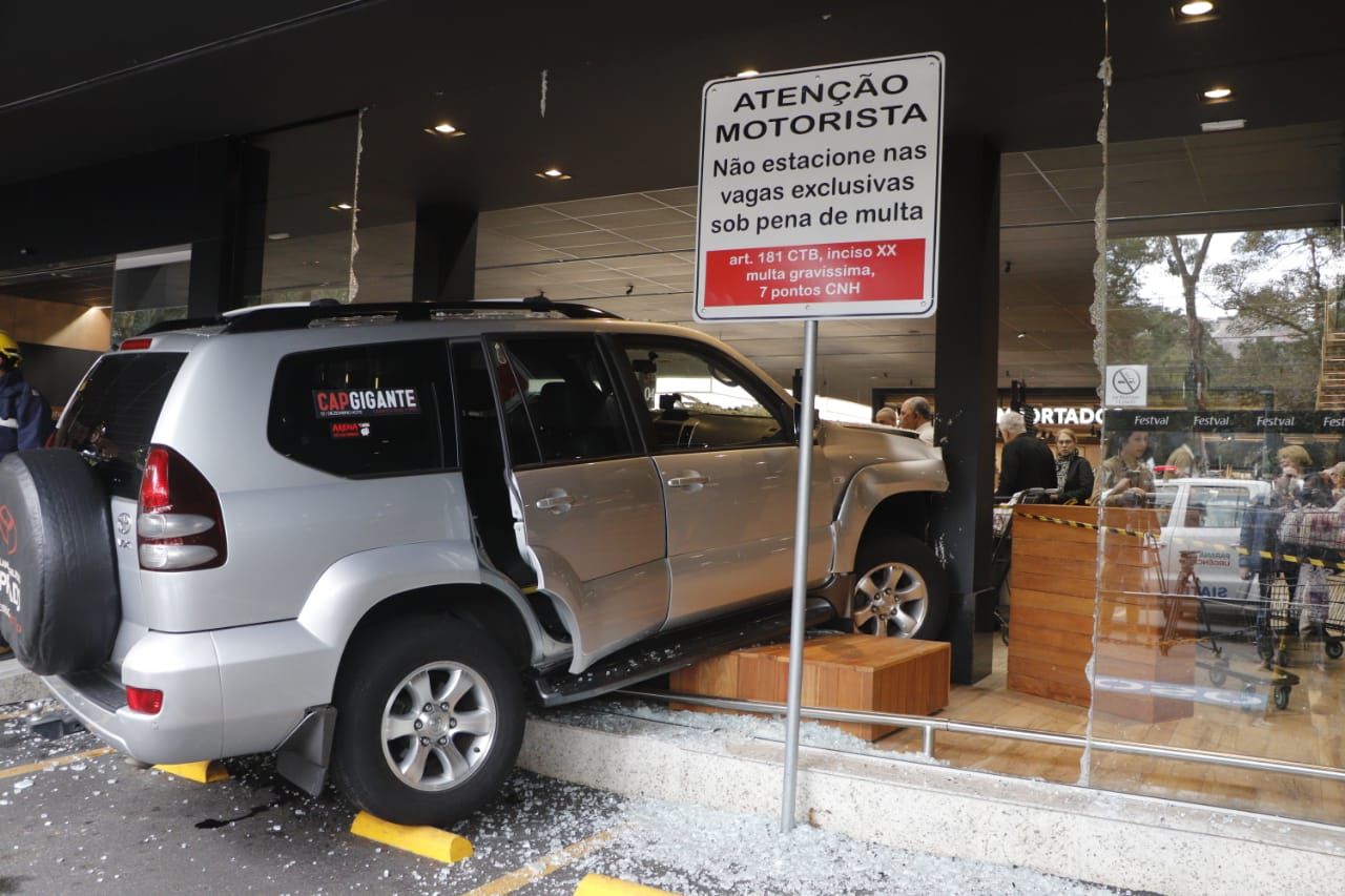 Três pessoas ficaram feridas após uma caminhonete Toyota Prado invadir um supermercado na tarde desta quinta-feira (27) na Rua Brigadeiro Franco, quase esquina com a Avenida Martim Afonso, no bairro Mercês, em Curitiba. O motorista de 81 anos sofreu um mal súbito e o pé dele ficou preso no acelerador quando ele iria estacionar no pátio.