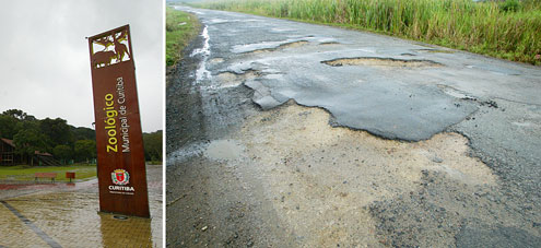 Conhecer o Zoológico Municipal, no Parque Iguaçu, é um programa que pode se tornar um verdadeiro desafio para turistas que visitam Curitiba e moradores da cidade. Acesso mais conhecido ao local, a via que parte da Avenida Marechal Floriano Peixoto está completamente deteriorada, com o asfalto cheio de buracos. Já a entrada pela Rua João Micheletto teve a pista recuperada recentemente, mas continua com sinalização precária, o que faz que muita gente se perca antes de chegar ao parque.