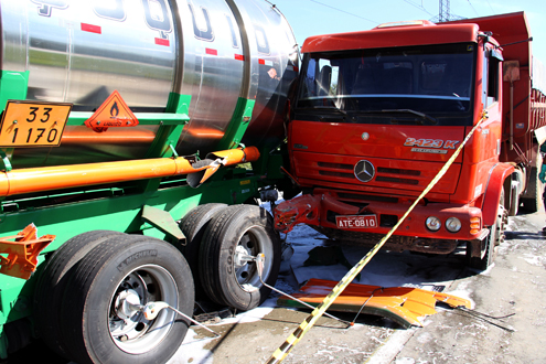 Menos de vinte minutos depois, três caminhões bateram na pista contrária, no quilômetro 602. Ninguém se feriu. Um dos veículos carregava etanol, e o tanque foi danificado, causando vazamento. O Corpo de Bombeiros e o Instituto Ambiental do Paraná estiveram no local para evitar riscos de explosão e ao meio ambiente.